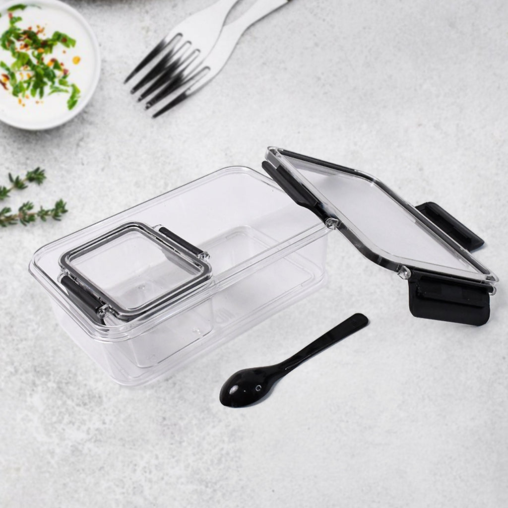 Plastic Kitchen Storage Container Big 800 ML & Small 250 ML with Air Seal Lock Lid & Spoon for Storage of Grocery, Spices, Dry fruits Use For Home, Office, Restaurant, Canteens (2 Pc With 1 Pc Spoon)