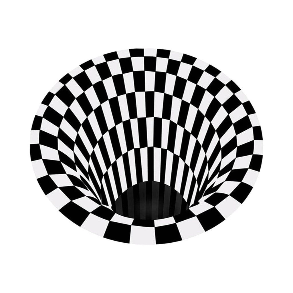 3D Space Round Carpet, Checkered Vortex Optical Illusions Non Slip Area Rug -Slip Floor Mat Non-Woven Doormat, for Living Dinning Room Bedroom Kitchen, 3D Vortex Rug Visual Illusion Rug Anti-Skid Area Dining Room Mat (1 Pc / 78 Cm)