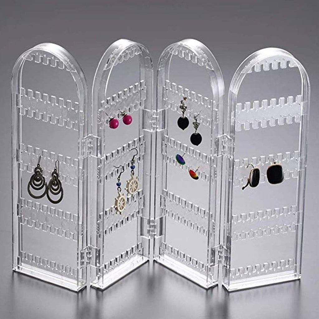 Acrylic Earrings Holder for Women, 4 Doors Foldable Screen Necklace Display Rack, Hanging Jewelry Organizer Double Sided Stand Display, Clear (1 Set)