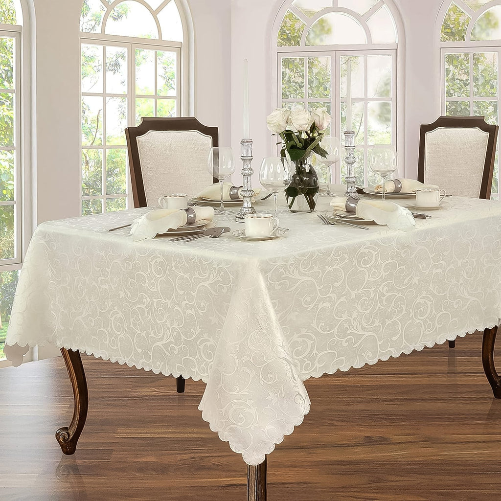 Table Cloth, Polyester Fabric Tablecloth Thick, Wrinkle Resistant Washable Reusable Table Cover for Dining Picnic Outdoor Camping Anniversary Party Decoration (140×140 Cm / 1 Pc)